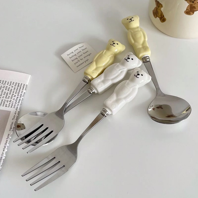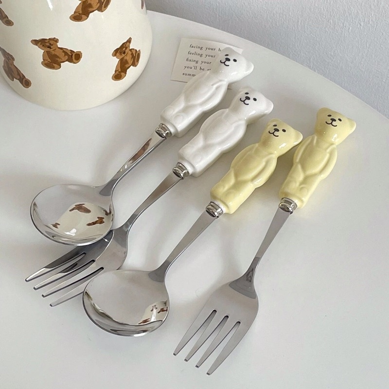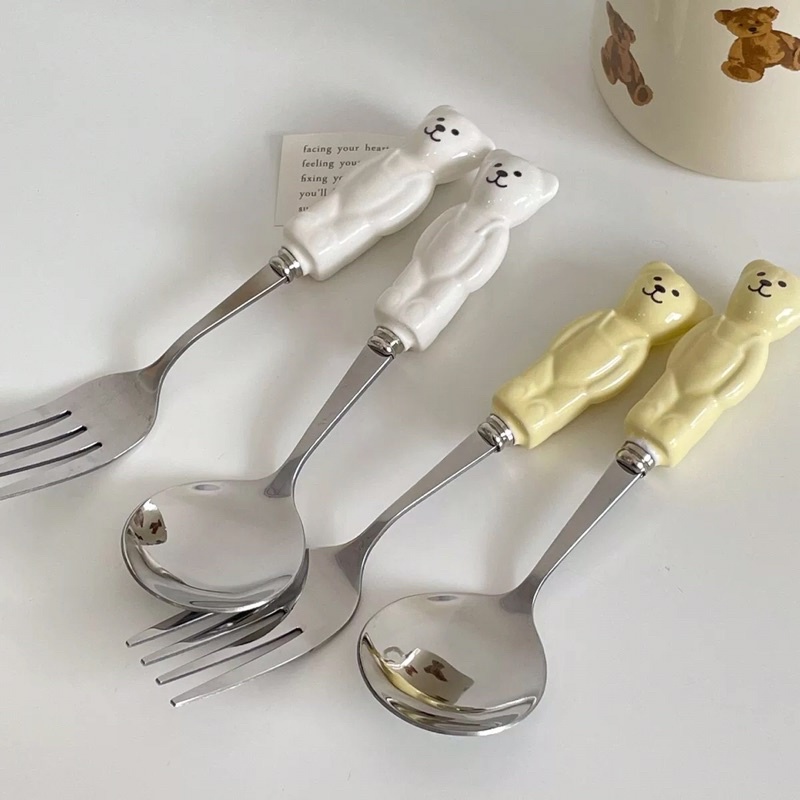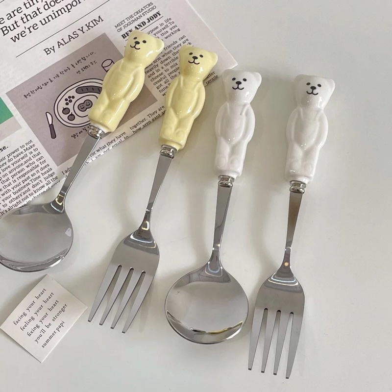 ( HÀNG CÓ SẴN )[anla.decor]_Set thìa và dĩa hình con gấu ( có 2 màu ) free ship