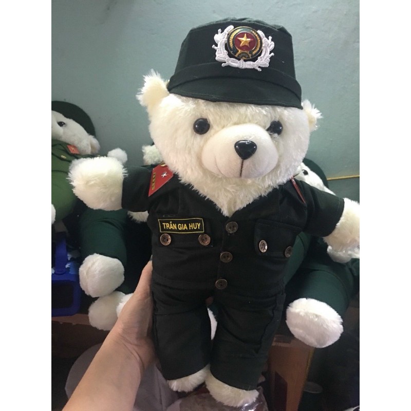 gấu bông Quân đội công an cảnh sát cơ động ( in tên ,tiết, quân hàm) free ship