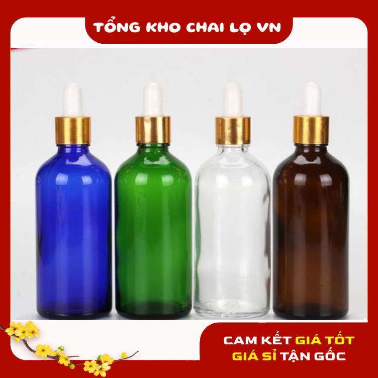 Lọ Chiết Serum ❤ SIÊU RẺ ❤ [100ml] Chai lọ đựng tinh dầu thủy tinh rỗng nắp bóp giọt khoen vàng , phụ kiện du lịch free ship